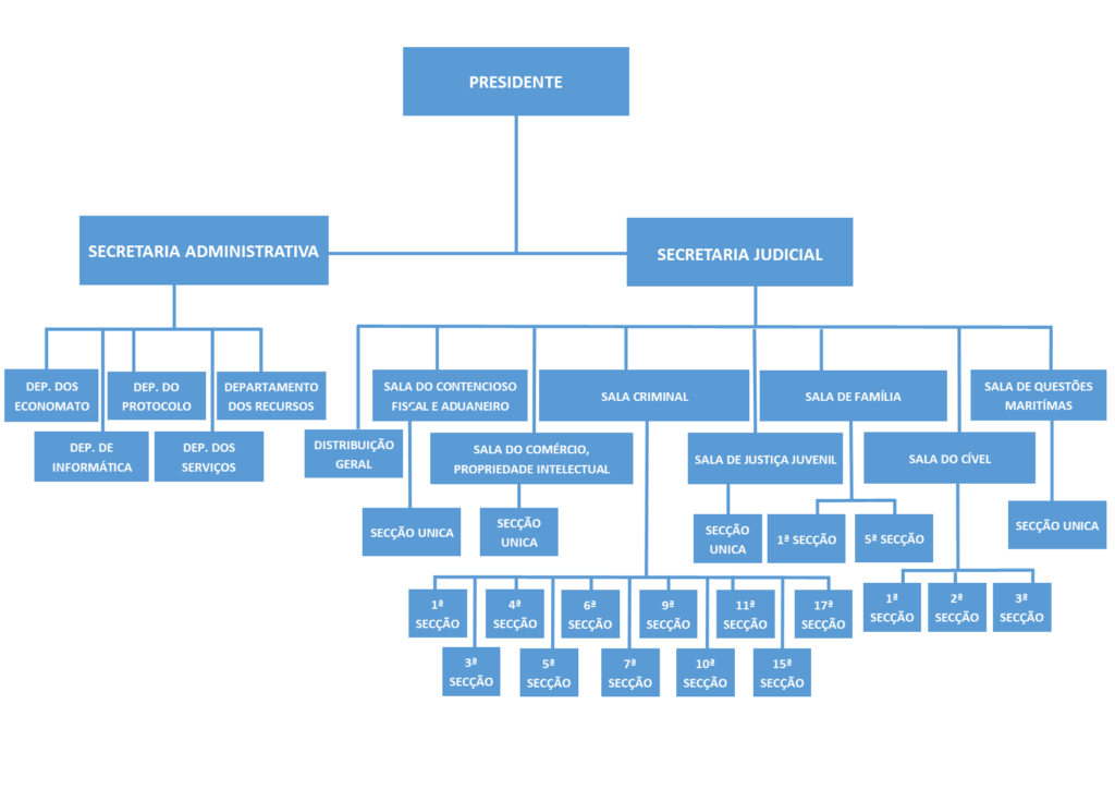 Tribunal da Comarca de Luanda O Tribunal da Comarca de Luanda, como outros tribunais em Angola, possui uma estrutura organizacional específica que pode variar em alguns detalhes.